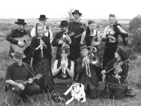 From Odessa, across the Balkans and over the Carpathians (but mostly Sheffield) come the Bell Hagg Orkestar to delight, entertain and make you dance. The Bell Hagg Orkestar combines the bitter and twisted sounds of Poke with eastern european troubadors Minnie Moosika. They play bars, cabarets, festivals, anywhere where people want to kick up their heels and lose themselves in a frenzy. From the Black Sea to the red skies a klezmer gypsy knees up! A wall of brass, clarinets, drums, bass, strings and voices woven round tradi -tional Eastern European dance music.
